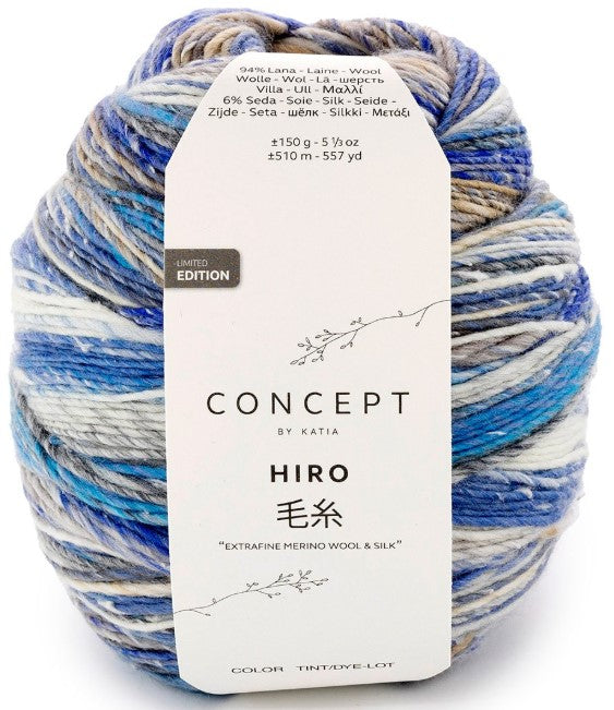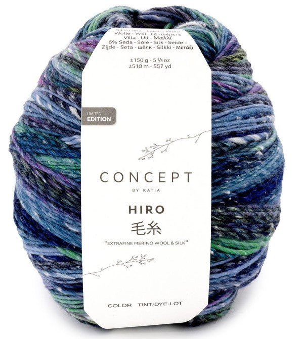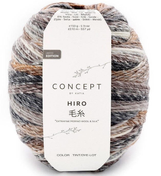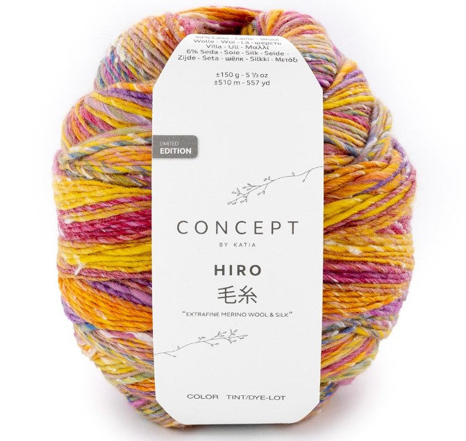 Hiro by Concept by Katia brings the charm of handcrafted things into your life! This unique yarn is the perfect blend of extrafine merino and silk, offering a soft feel and a rich color range. It alternates colors to create wonderful effects in your knitting projects. Forget about ordinary yarn and enjoy the indescribable softness of Hiro by Concept by Katia. This is a unique experience you don’t want to miss out on.