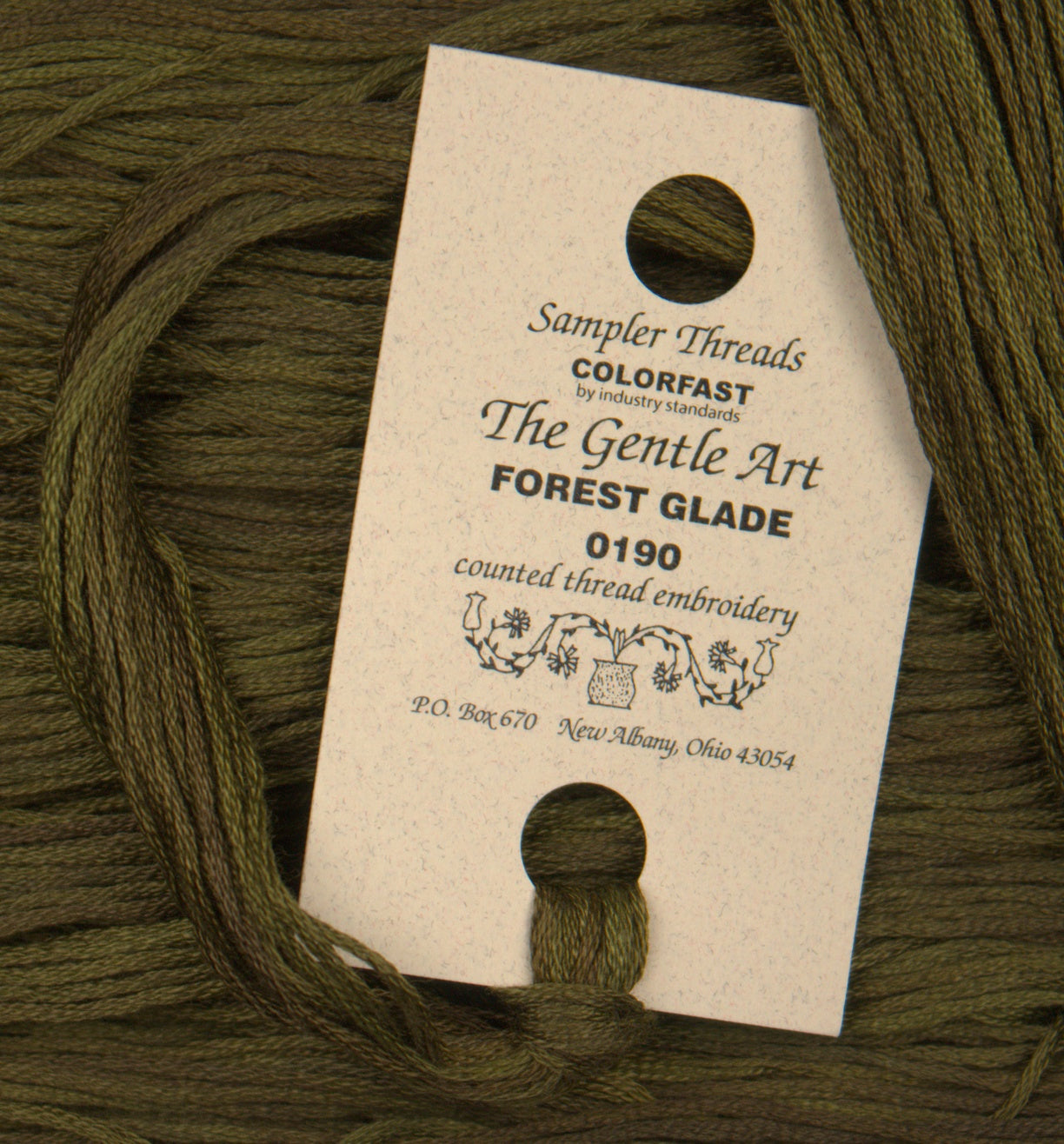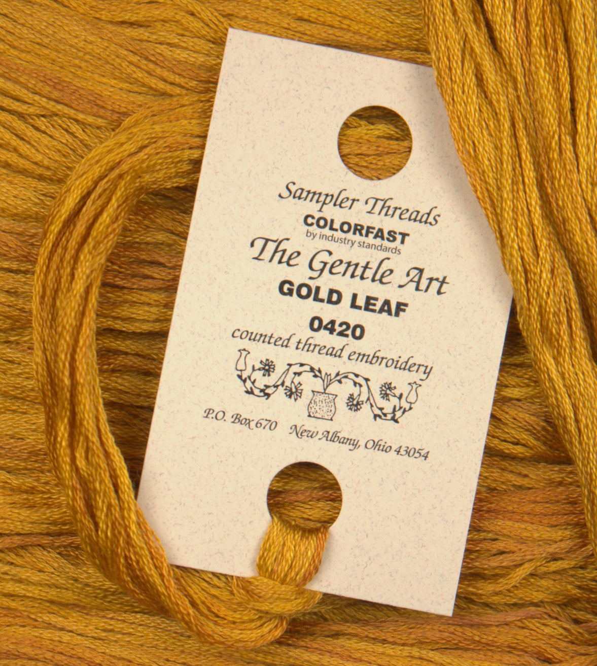 The Gentle Art threads are 6-strand 100% cotton embroidery floss and come in 5 yard skeins. They are subtly shaded, each skein containing many colours blended with care to provide incredible visual richness.