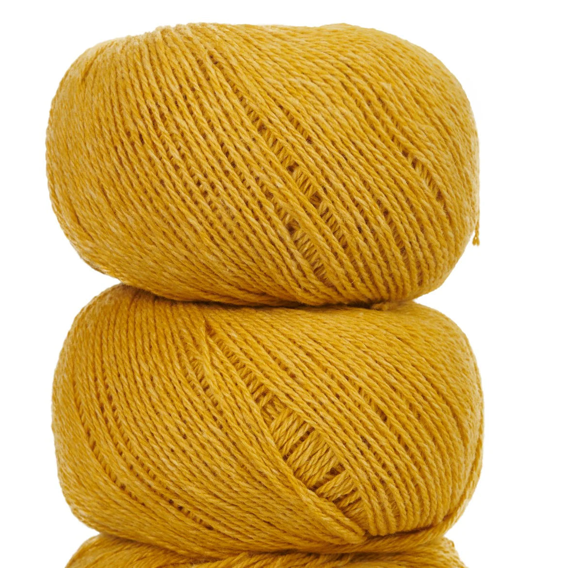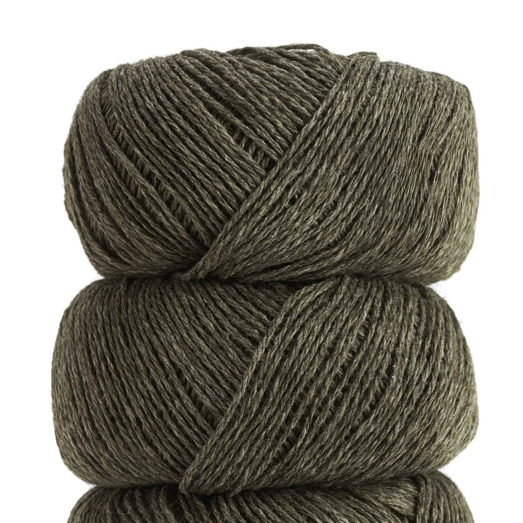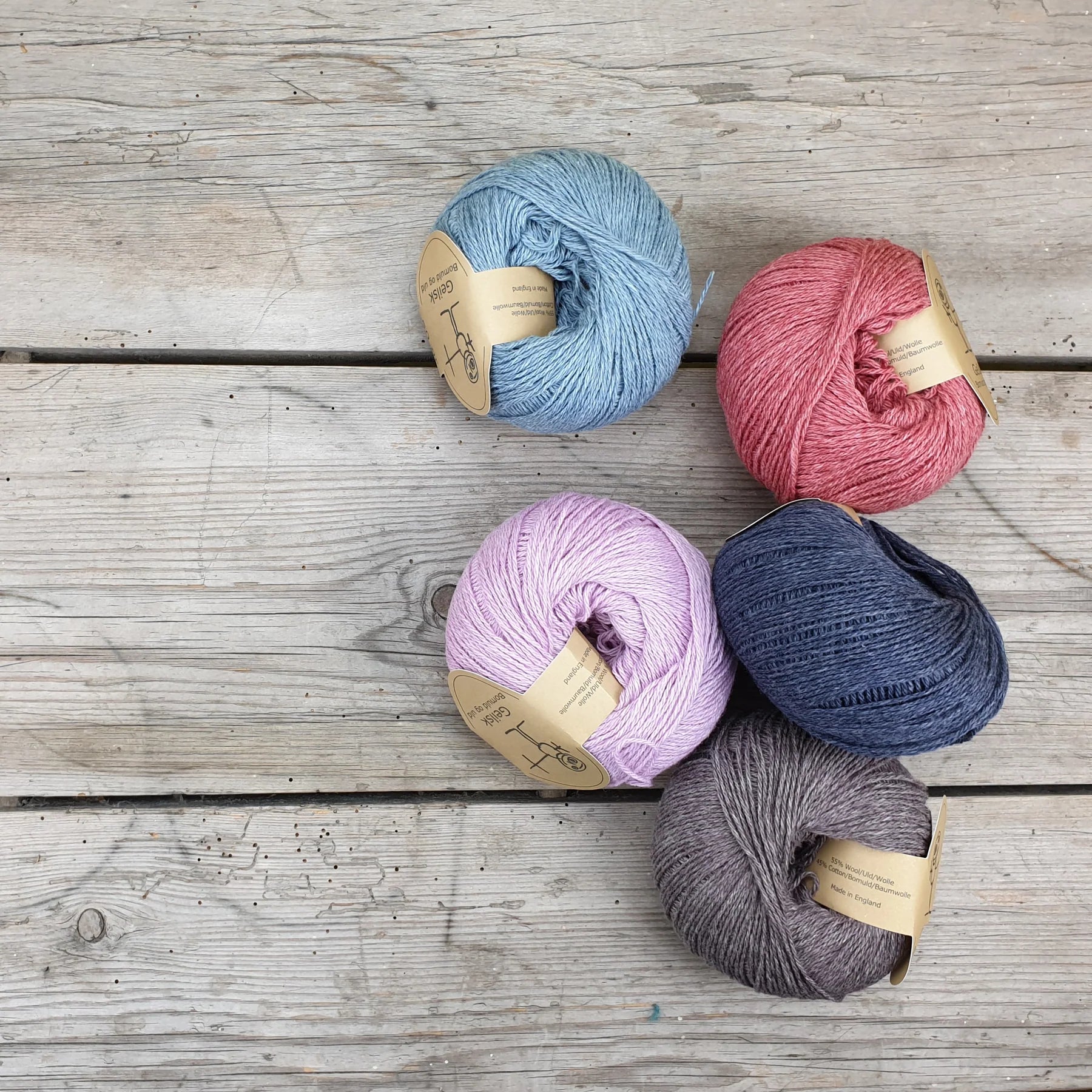 Geilsk Bomuld Og Uld consists of 55% wool and 45% cotton, mixed and spun together into a lovely yarn that retains its softness after washing.