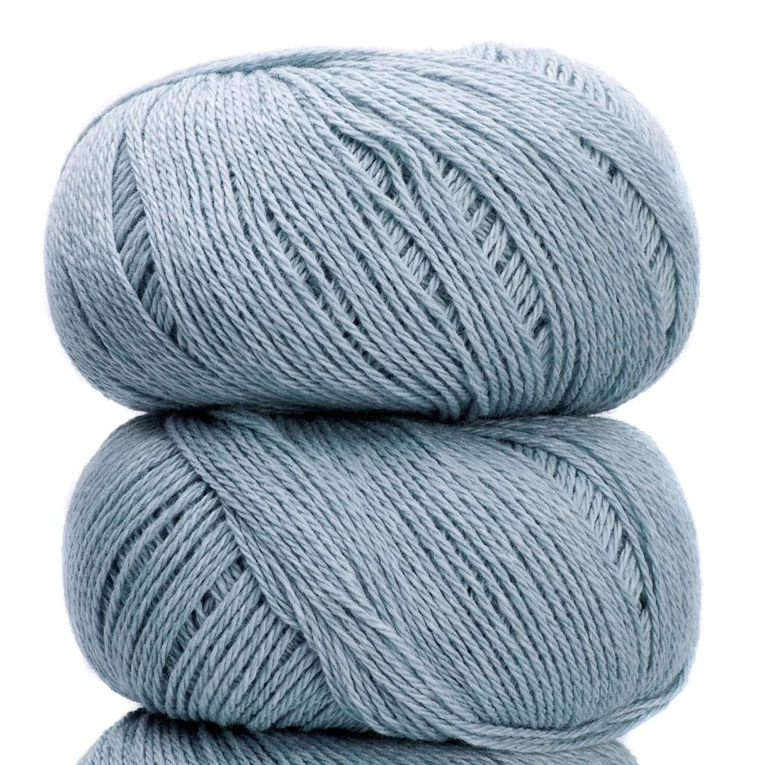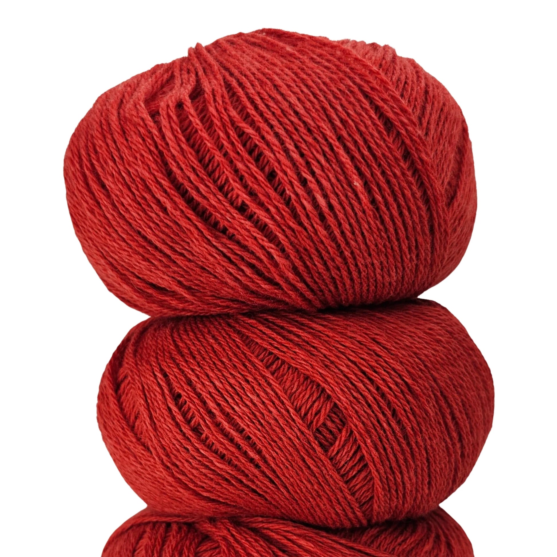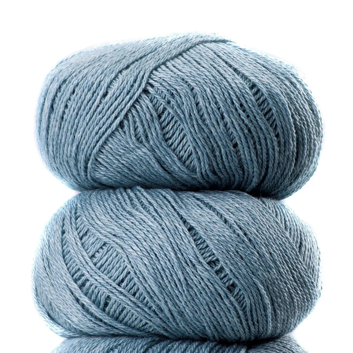Geilsk Bomuld Og Uld consists of 55% wool and 45% cotton, mixed and spun together into a lovely yarn that retains its softness after washing.
