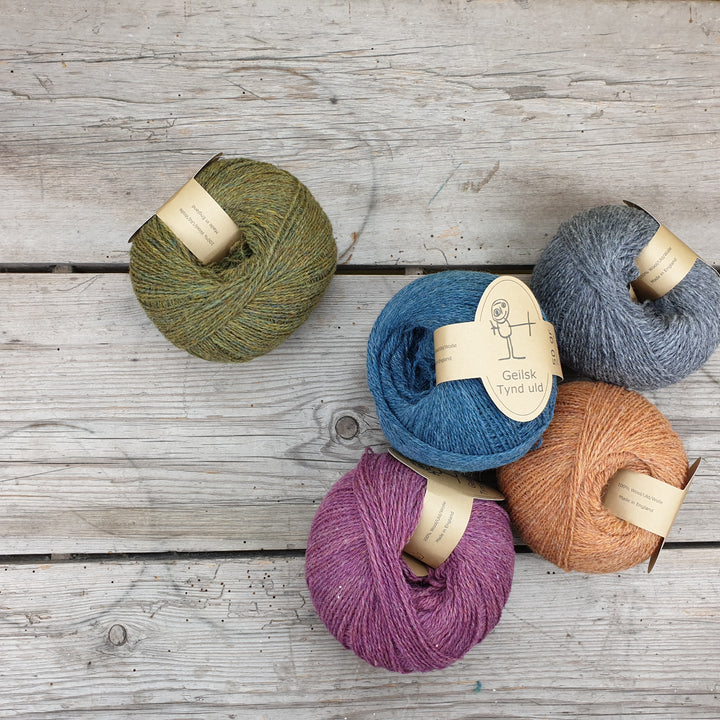 Geilsk Tynd Uld is the most delicious wool you can imagine. Easy to knit with and gets a nice even look with the light heathering. The finished work becomes softer after washing. Hand washing is recommended.