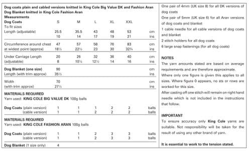 The pattern that dog owners have been waiting for. Keep your furry friend a little warmer this year with a plain or cabled coat. Knit in pieces and then seamed, for both DK or Worsted yarn
