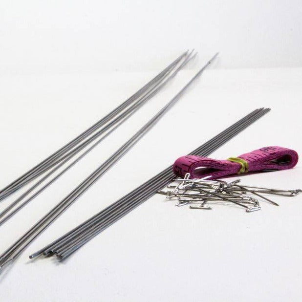 These lace blocking wires from Knitter's Pride are ideal for giving your knitted lace projects that finishing touch. Each pack comes with 15 stainless steel wires and 20 T-pins that are rust-resistant! To use, slip the wire through the edges of your lace project and place blocking pins along the inside of the wires to hold everything in place. Once your project is dry, remove the wires to reveal your perfectly shaped garment or accessory!