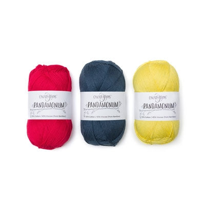 Delightfully soft and silky, Pandamonium is a DK weight blend of 55% Cotton and 45% Viscose from Bamboo. This lightweight yarn offers drape, breathability and strength and is available in a broad palette of 34 colours. Equally well suited for both knit and crochet, Pandamonium works up beautifully for elegant accessories and garments for the whole family as well as home décor.