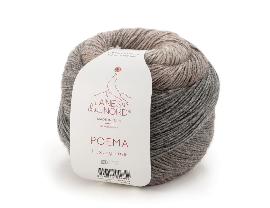 Composed of 100% mulesing-free wool, Poema is a yarn in which colors blend in a flawless sequence with a degradé effect. The multicolored hues make it ideal for fall and winter accessories, even using only one skein. Suitable for both needlework and crochet, this yarn offers excellent performance for shaded shawls, and warm, colorful scarves.