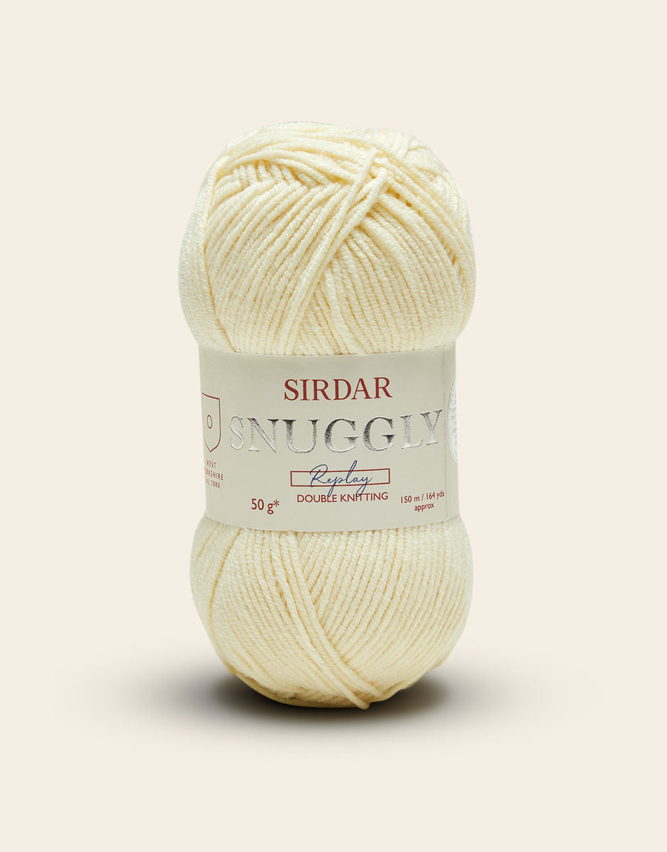 Snuggly Replay is a soft, double knitting weight cotton/acrylic blend for light weight garments for for kids or everyone who's a kid at heart. This yarn is machine washable and comes in softly marled shades that already have that lived-in look of an often worn, often washed favourite garment.